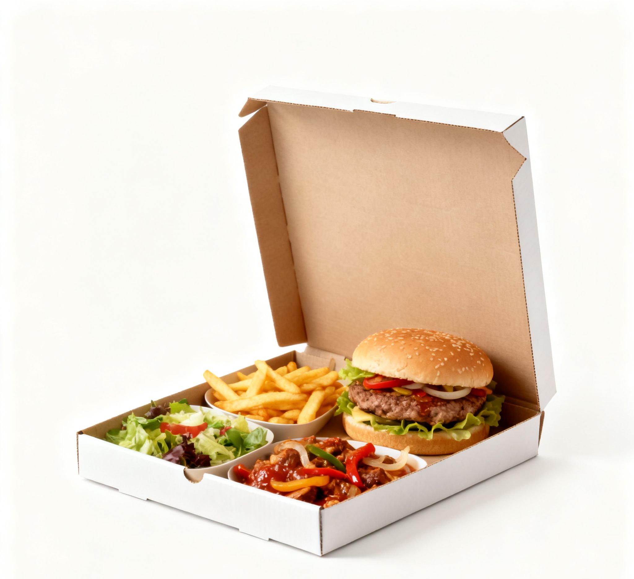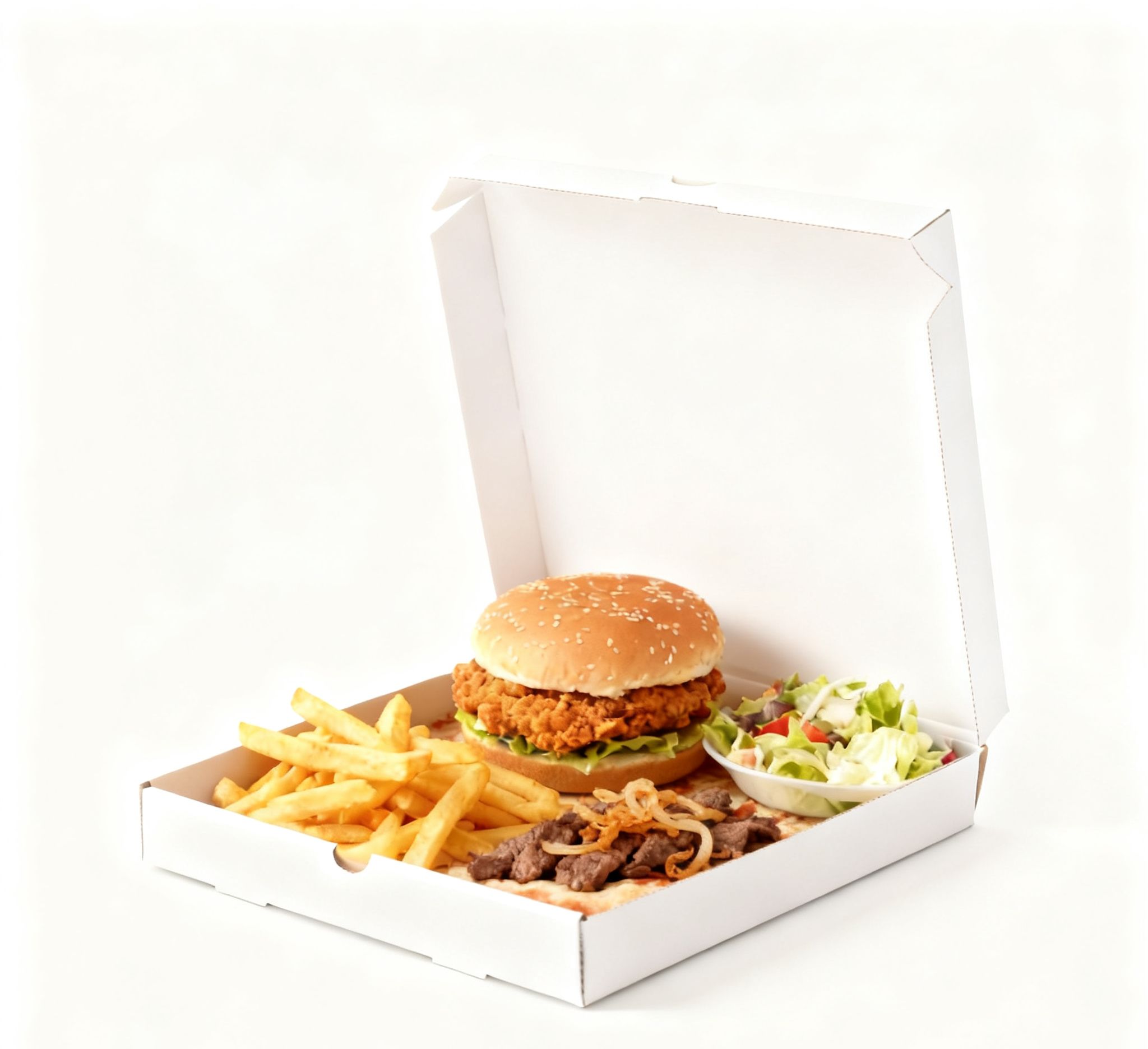 1 Cheese Burger, Chicken Donner, Fries & Salad. Bonus Free Tango