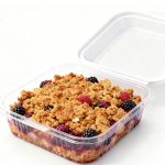 Warm spiced apples and tangy blackberries topped with a golden crunchy oat crumble!