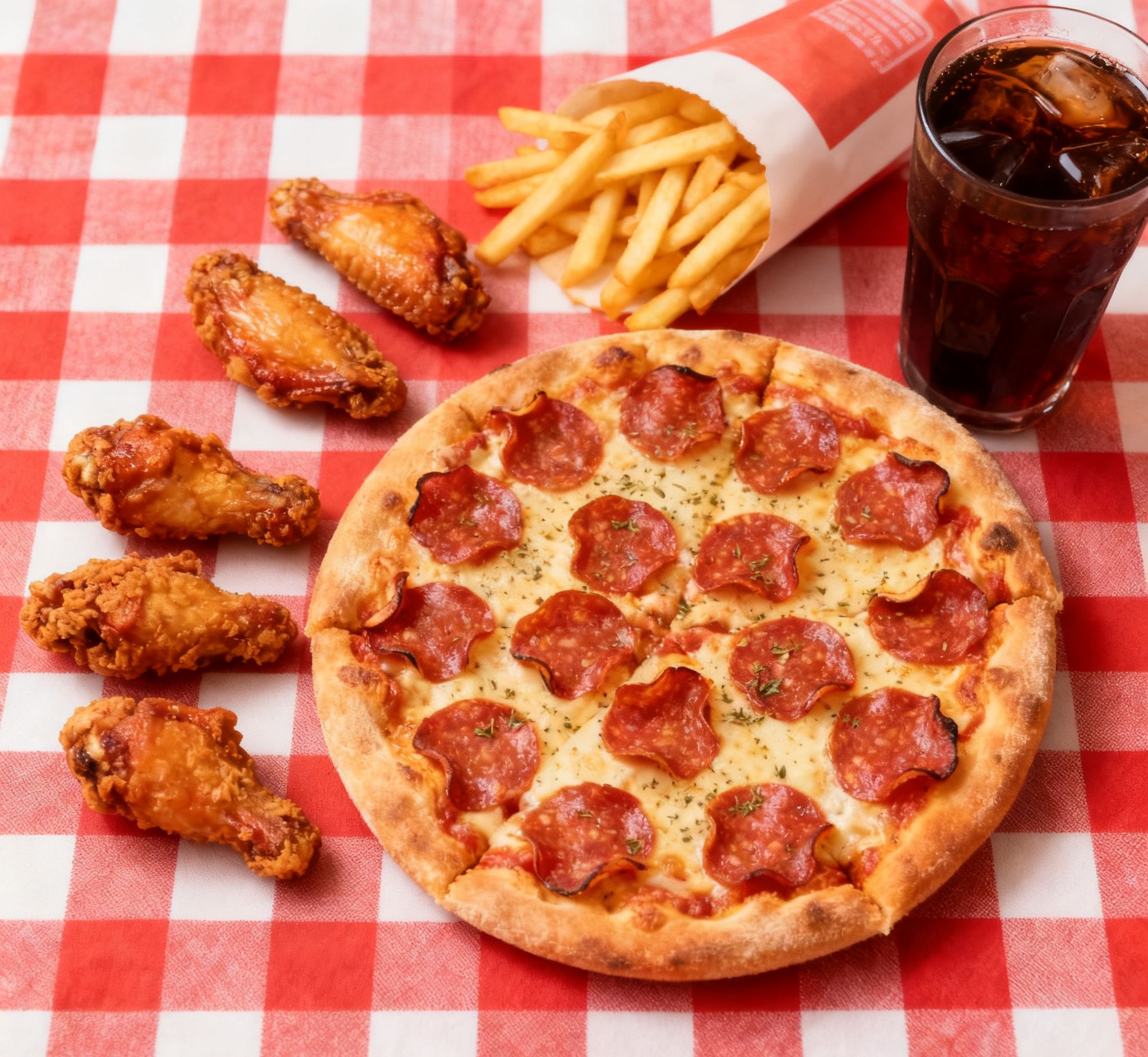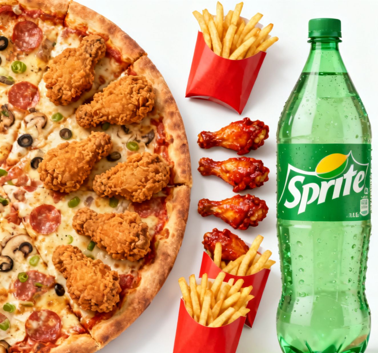 8 PCS CHICKEN, 6 WINGS, 2 REG FRIES, 1.5L DRINK