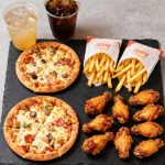 15inch pizza 4 garlic bread plain - 4 cheesy garlic bread 6 southern fried wings and 2x Ben an Jerry’s 100ml cookie dough